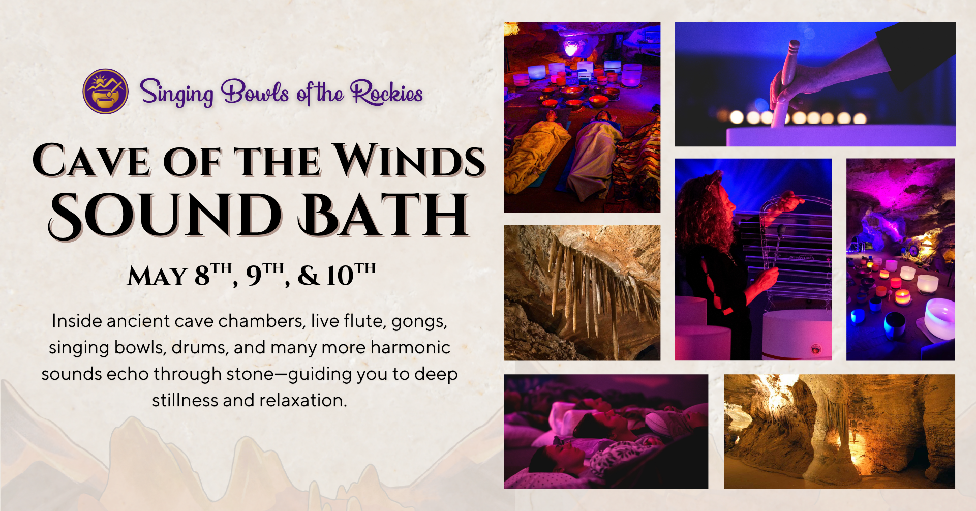 Step into the vast, echoing chambers of Cave of the Winds and experience a powerful meeting of nature and sound. Deep beneath the surface, surrounded by ancient rock formations shaped over millions of years, the steady resonance of Tibetan and crystal singing bowls, gongs, Native American flutes, hand pan, and layered instrumentation fills the cavern. […]